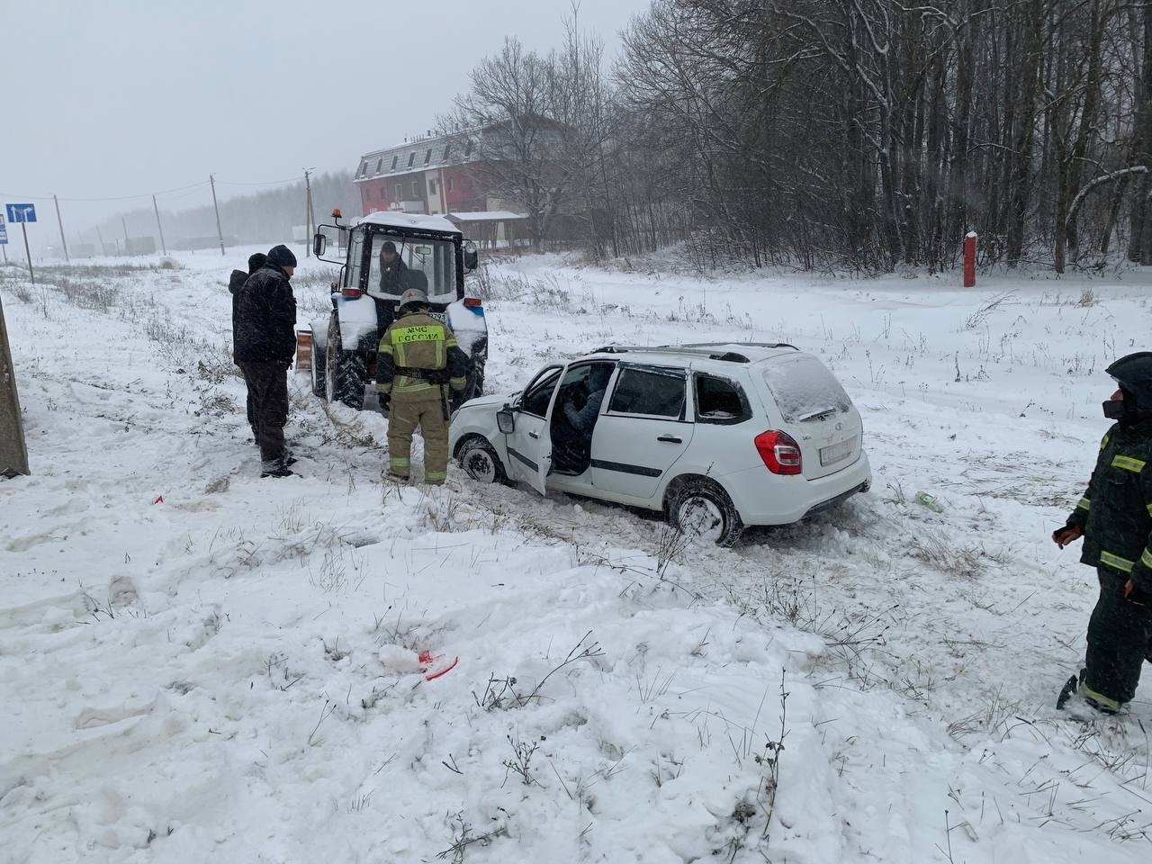 Авария случилась на 668-м километре магистрали. По предварительной информации, водитель автомобиля «Лада Калина» не справился с управлением. Машина съехала с проезжей части и опрокинулась в заснеженный кювет.