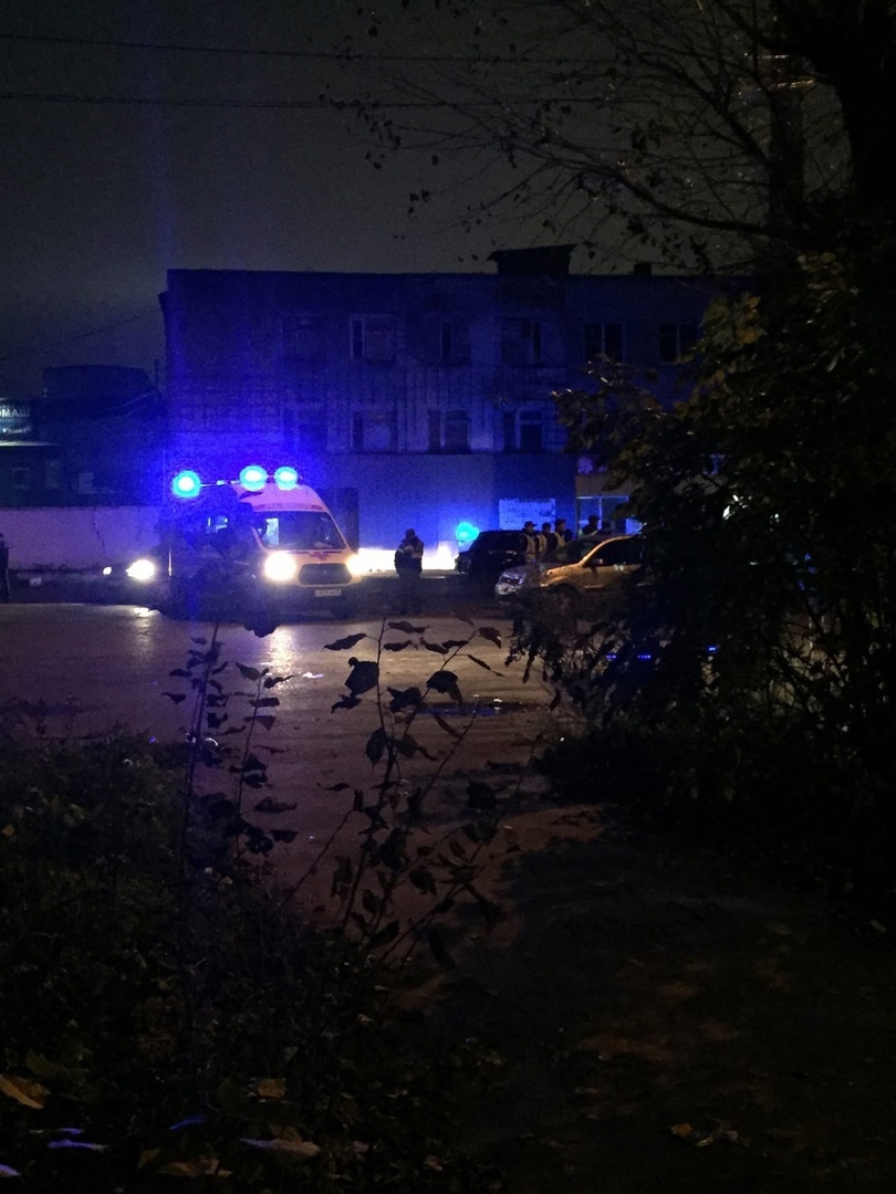 На снимке оказалась запечатлена машина скорой помощи и правоохранители. Снимок явно был сделано в позднее время суток.