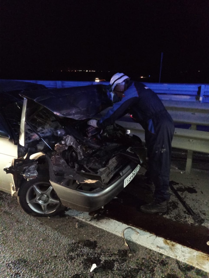 Сигнал о случившемся поступил в 21:10. На мосту легковой автомобиль «Лада 2112» врезался в фуру и отлетел в отбойник. В результате пострадавшего водителя легковушки зажало внутри транспорта.