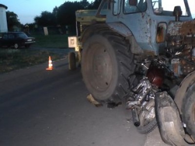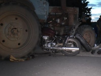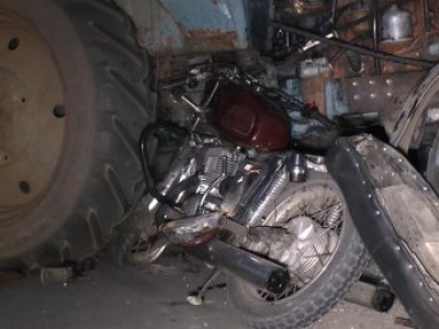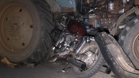 На снимках можно увидеть мотоцикл, залетевший прямо под трактор.