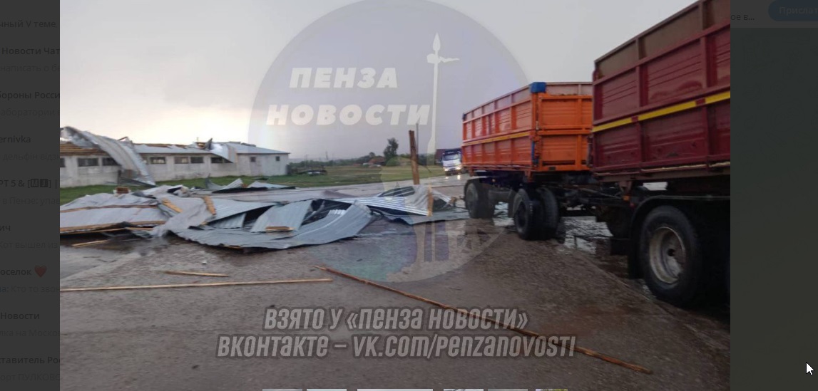 Стихия затронула и Бековский район. Возле сахарного завода сильный ветер сорвал профлисты и вырвал с корнем дерево.