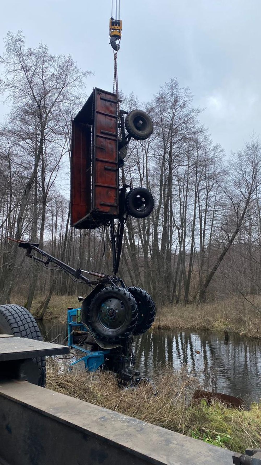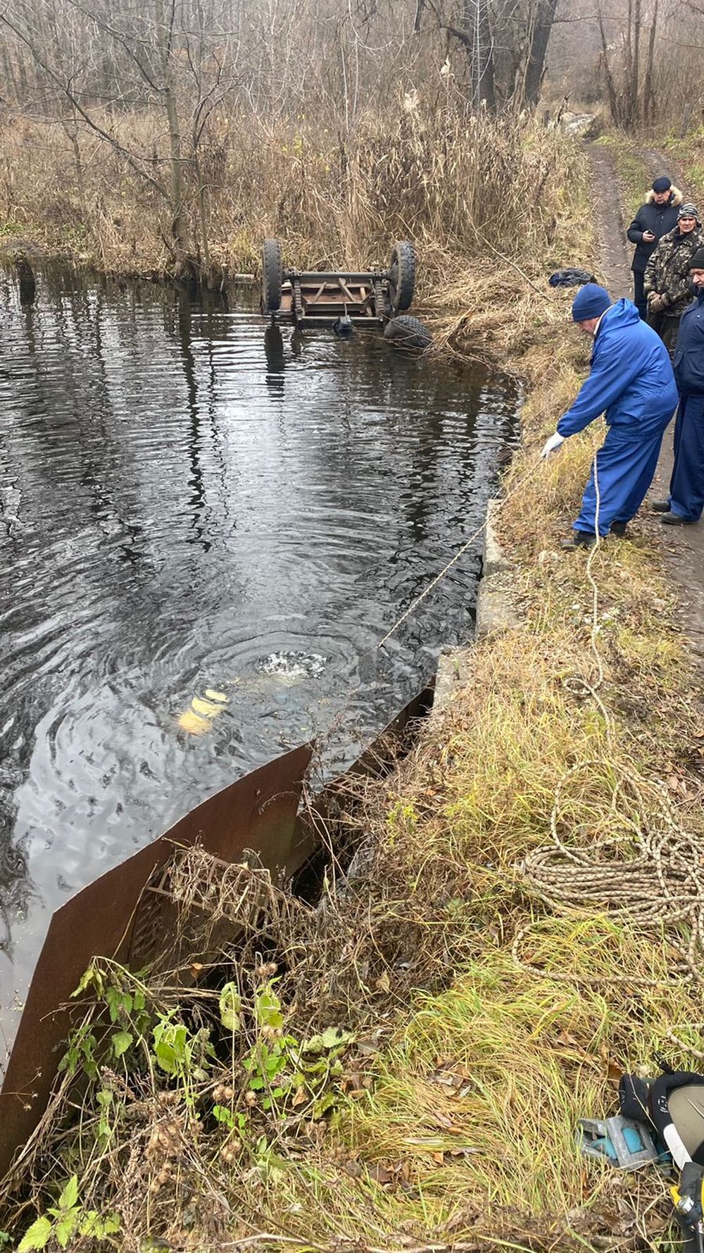 Также специалисты провели остроповку затонувшего трактора, а после подняли его из водоема.