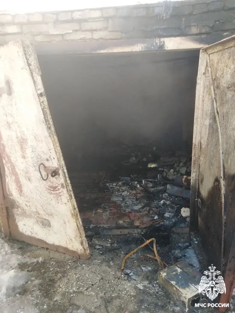 Сообщение о пожаре в гараже поступило диспетчеру в 03:32. На место прибыли подразделения МЧС. К ликвидации последствий привлекались две единицы техники.