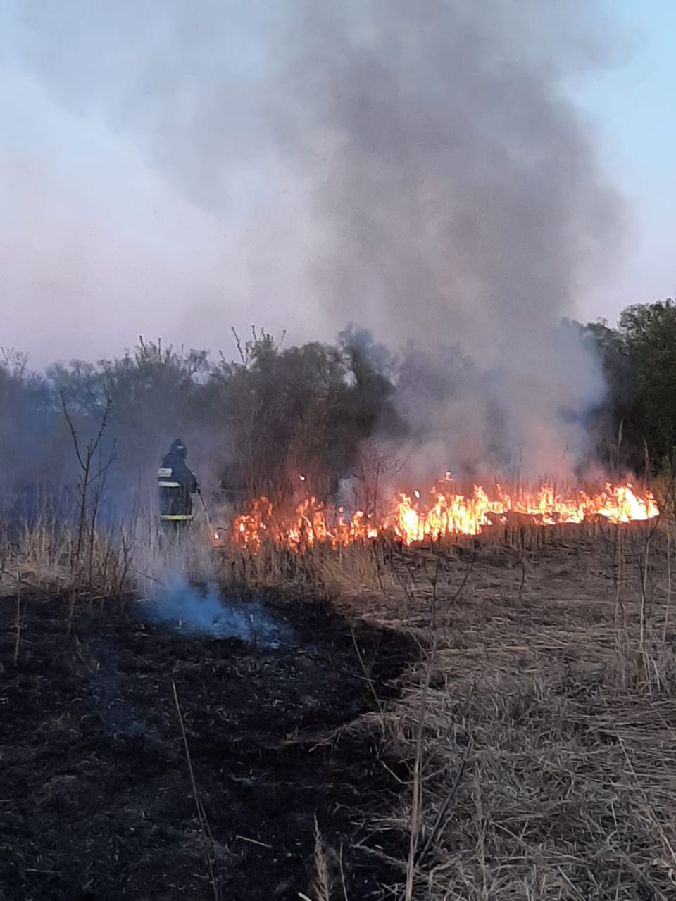 Огонь разгорелся около шести часов вечера в селе Саловка. Он охватил сухую траву на площади 2 га.
