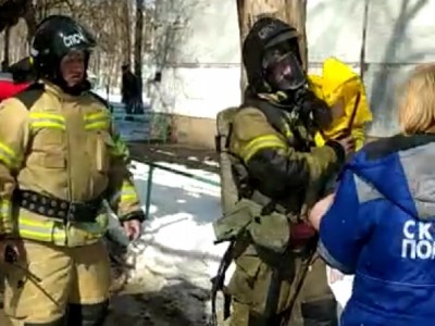 На предоставленной ведомством видеозаписи можно увидеть, что людей вызволяли из задымленного помещения в специальных «шлемах», защиту надели и на взрослых и на ребенка. Последнего спасатели выносили на руках.