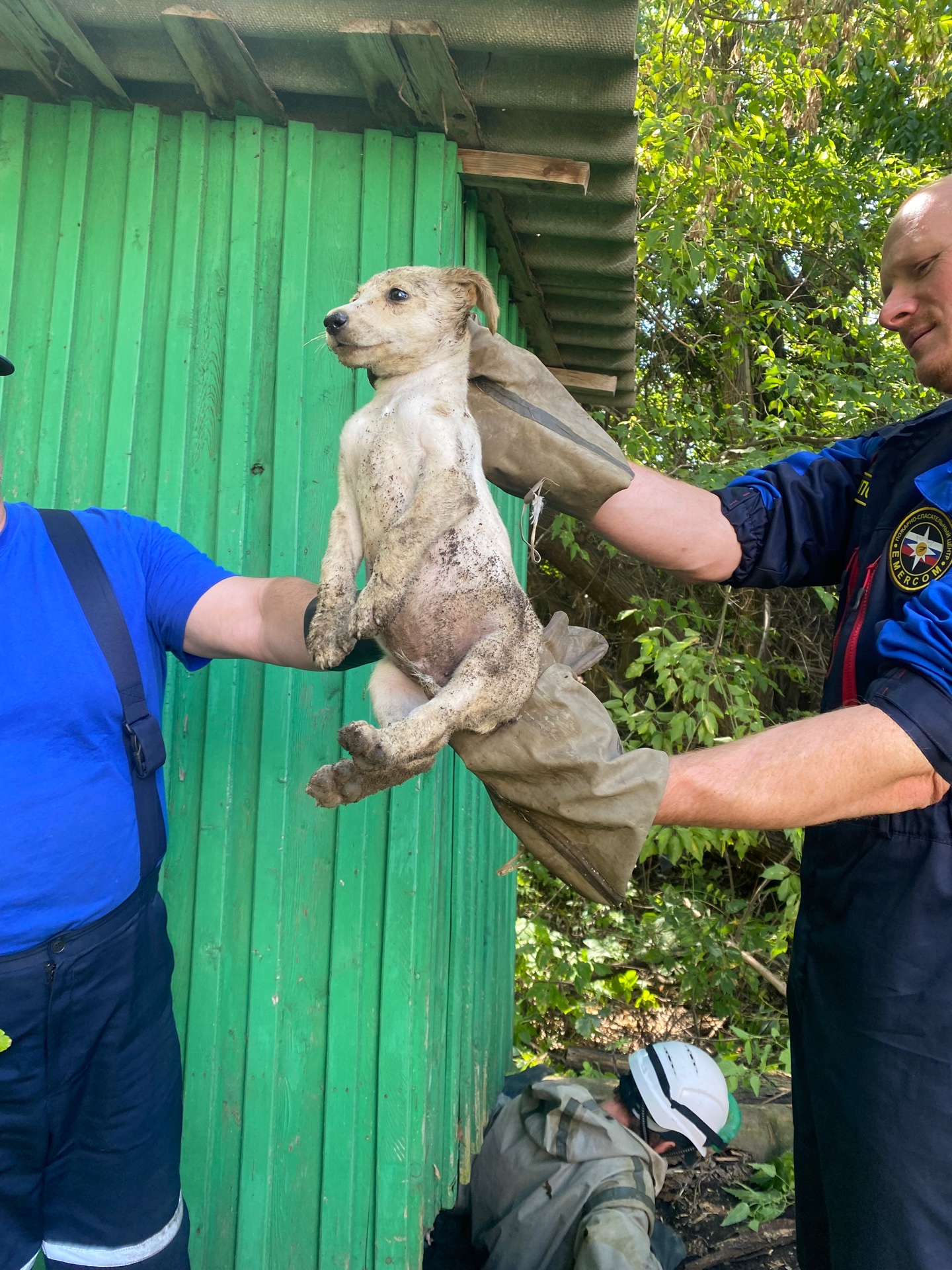 В этот день в пожарно-спасательный центр поступил сигнал из системы 112 о том, что в заброшенной выгребной яме глубиной два метра находится щенок, который не может выбраться самостоятельно.