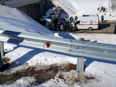 Инцидент произошел сегодня, 4 апреля, в Подмосковье. На 104-м км трассы М-9 рейсовый автобус, следовавший по маршруту № 467 из Москвы в Волоколамск, пробил отбойник и вылетел с эстакады вниз – на дорогу. В автобусе находились 20 человек, 2 из них умерли, 18 получили травмы.