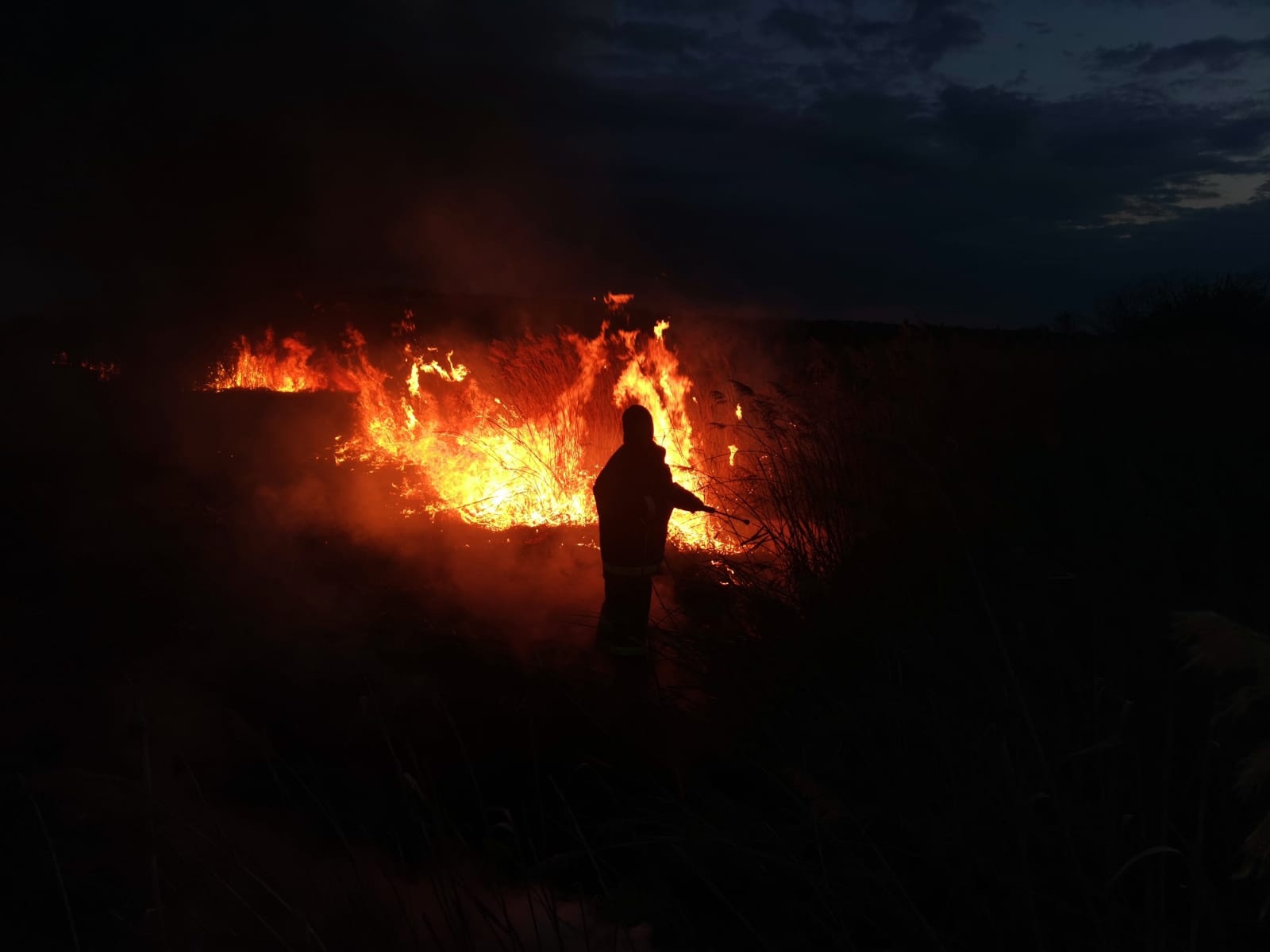 Около семи часов вечера огонь охватил сухую траву в селе Ухтинка. Пламя успело распространиться на площади 4 гектара.