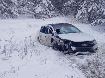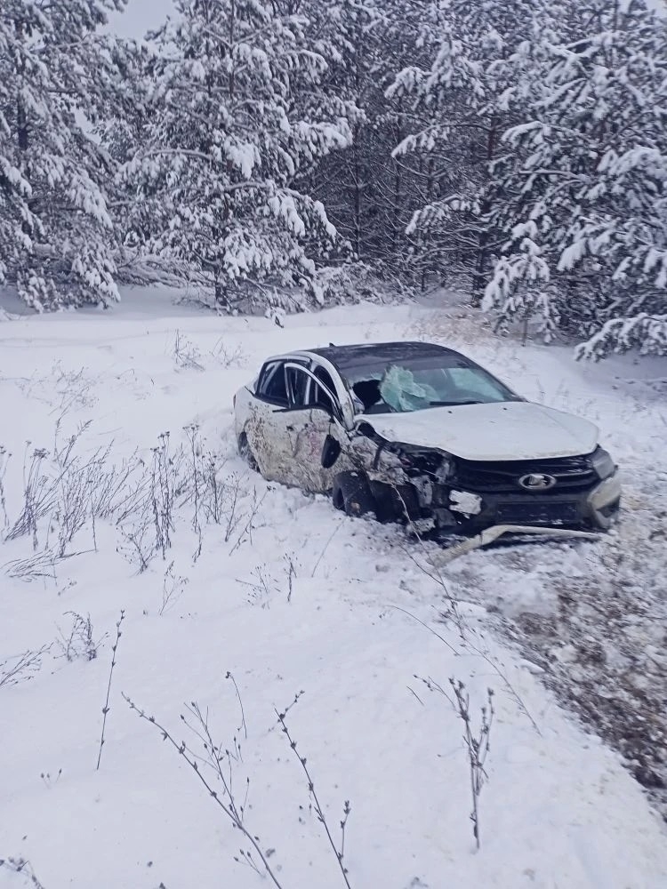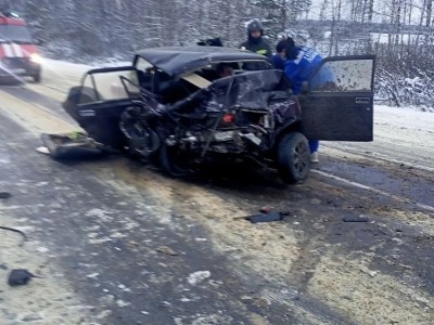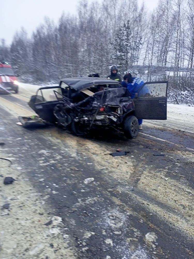 На фотографиях, опубликованных спасателями, видны серьезные последствия столкновения. Один из автомобилей был выброшен с проезжей части в кювет и остановился в снегу – у машины разбито лобовое стекло, отсутствует фара и сильно повреждена дверь. Второй автомобиль остался на дороге, однако от удара его буквально смяло – кузов превратился в груду металла.
