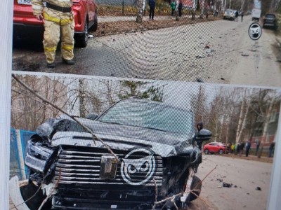 На кадрах видно иномарку красного цвета, впечатавшуюся в дерево. Судя по разбитому переду машины, она влетела в препятствие на большой скорости.
