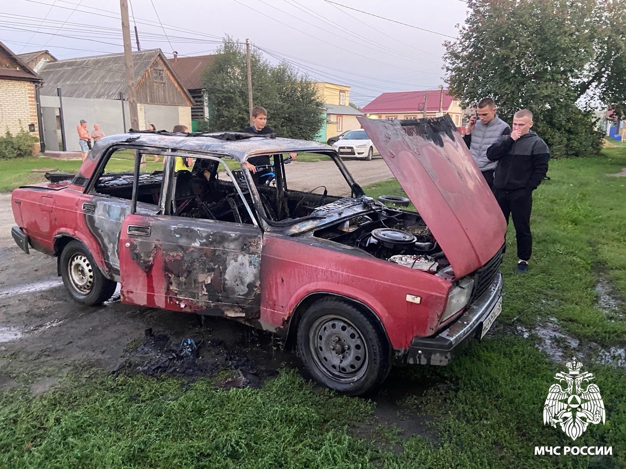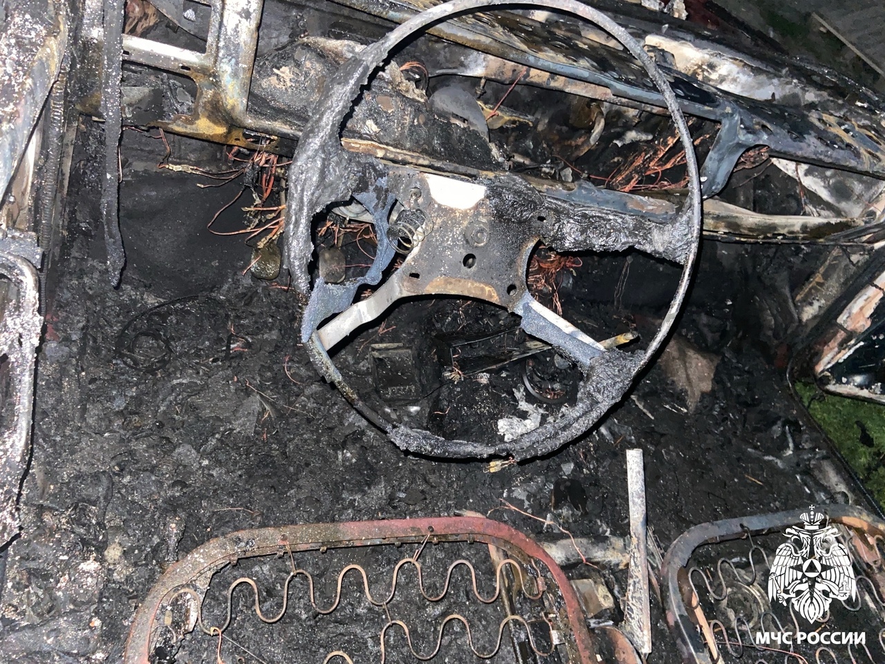 Пламя охватило «ВАЗ 2107» около семи часов вечера. В результате возгорания машина выгорела полностью.