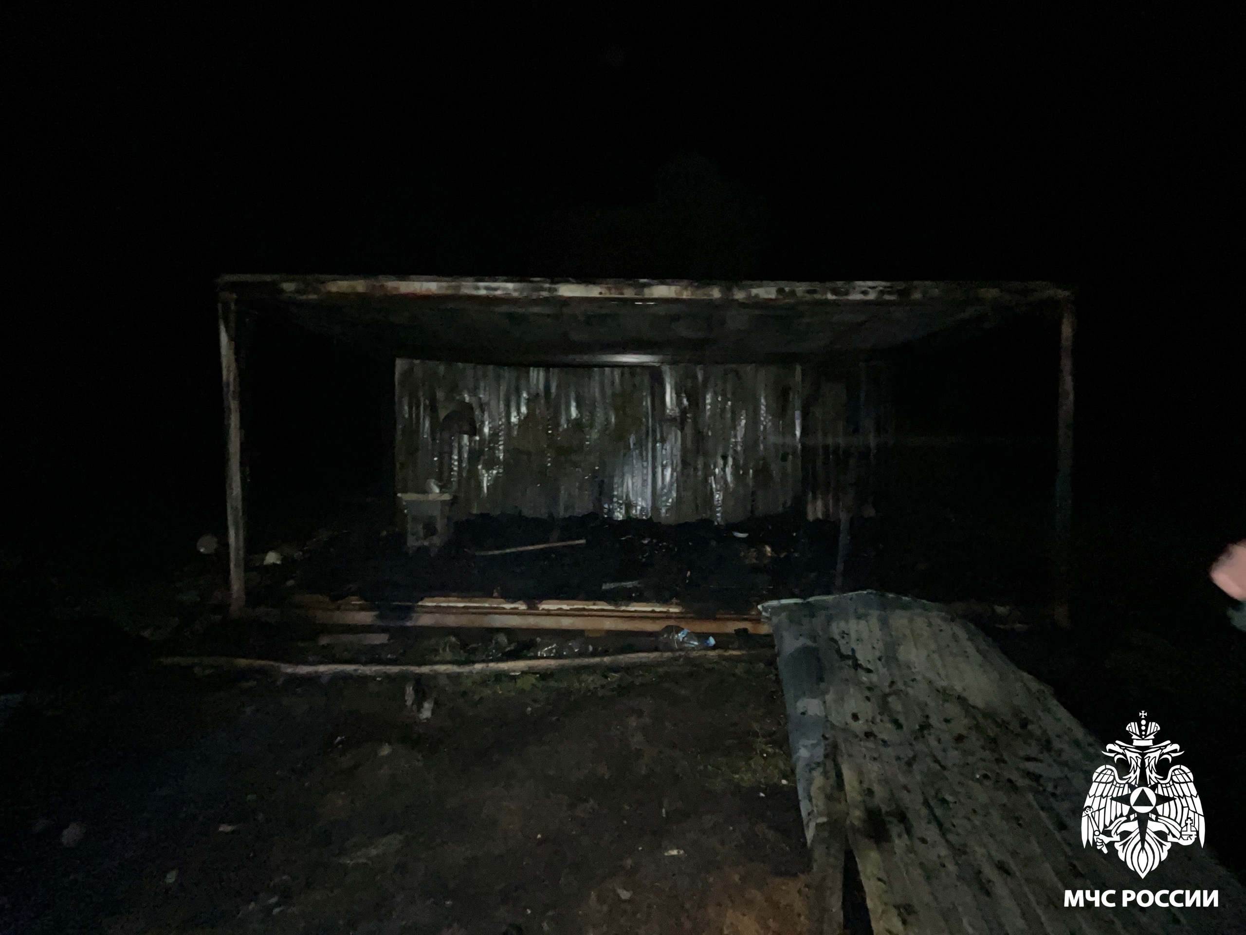 Огонь разгорелся в хозяйственном блоке. В результате пожара был полностью уничтожен металлический вагон общей площадью 18 квадратных метров.