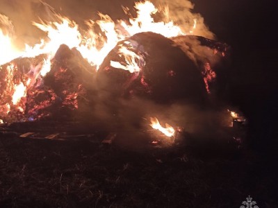 ЧП произошло вечером 21 сентября в Кузнецком районе. В селе Никольское загорелись тюки с сеном.