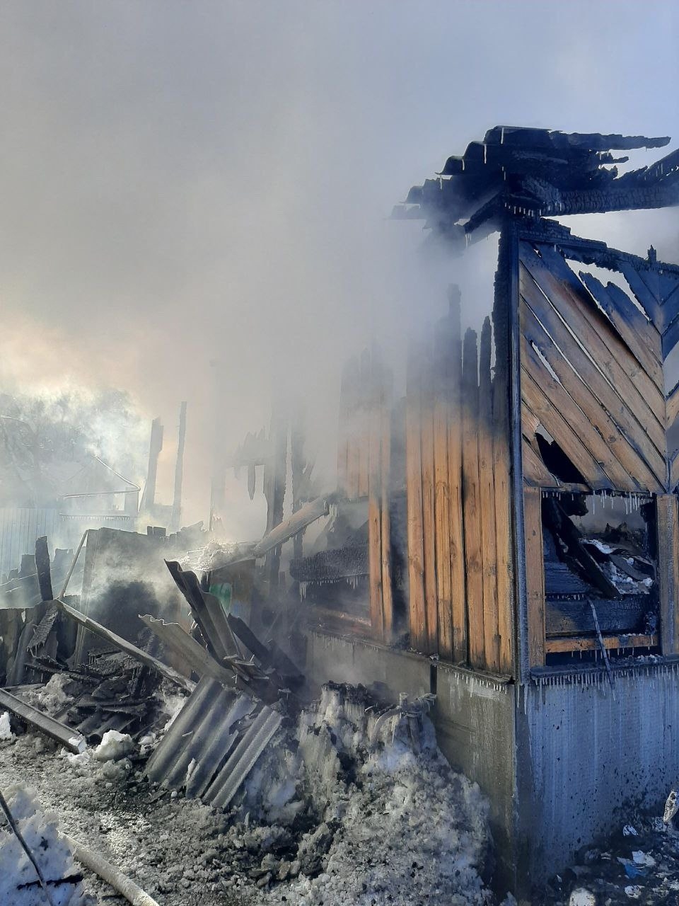 МКУ Никольского района «Служба спасения» опубликовала фотографии с места пожара, произошедшего 5 февраля 2026 года на станция Ночка. На снимках видно полностью выгоревший дом с обрушенной кровлей и работу пожарных расчетов, продолжающих ликвидацию последствий возгорания.