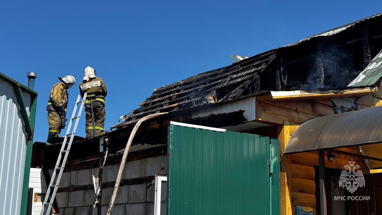 Горит крыша двухэтажного дома в переулке Володарского. Огонь охватил всю площадь кровли.