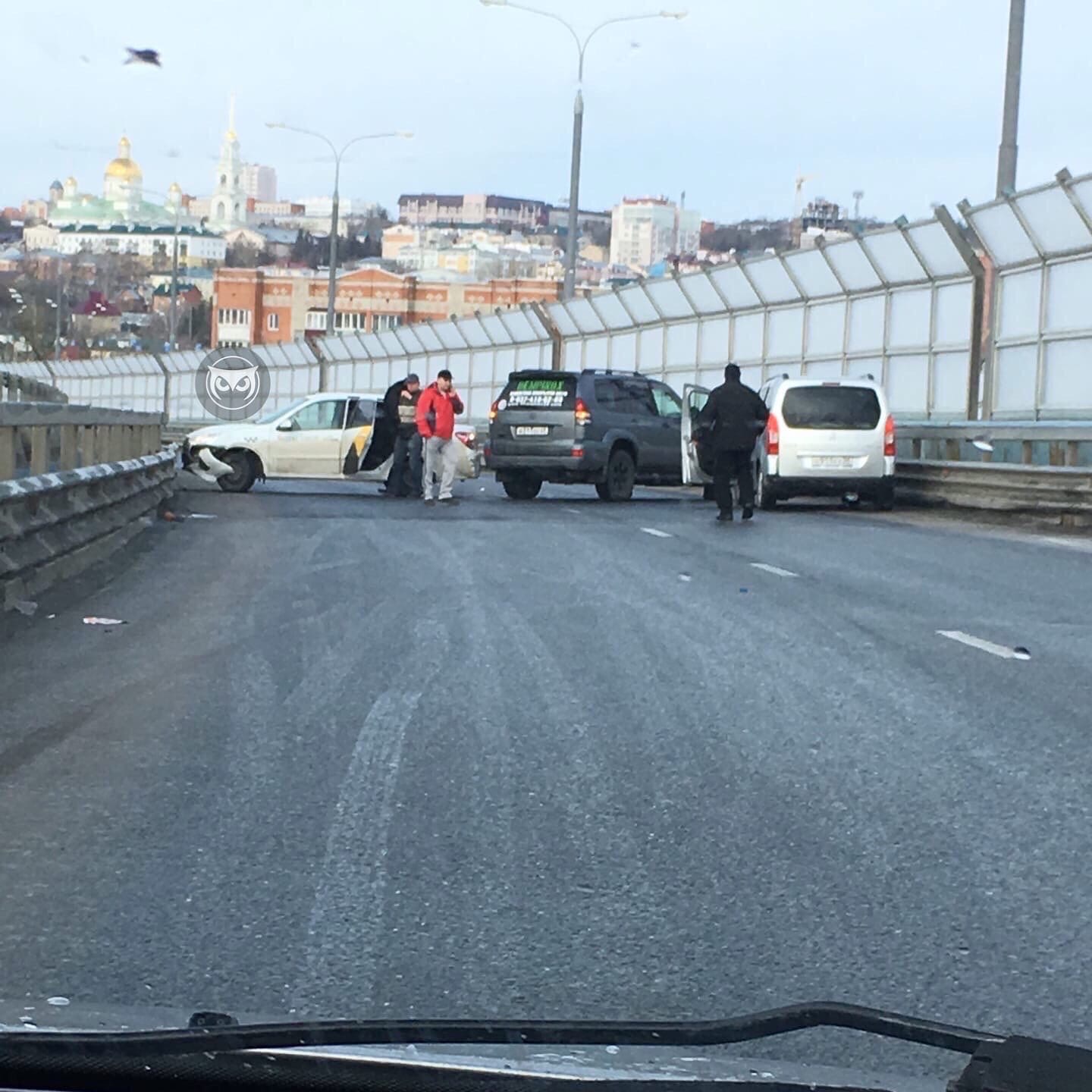 Об аварии стало известно из соцсетей. В группе «Сова Пенза Авто» один из очевидцев выложил фотографию трех машин: два кроссовера и легковушка с символикой «Яндекс.такси» перегородили съезд с путепровода.