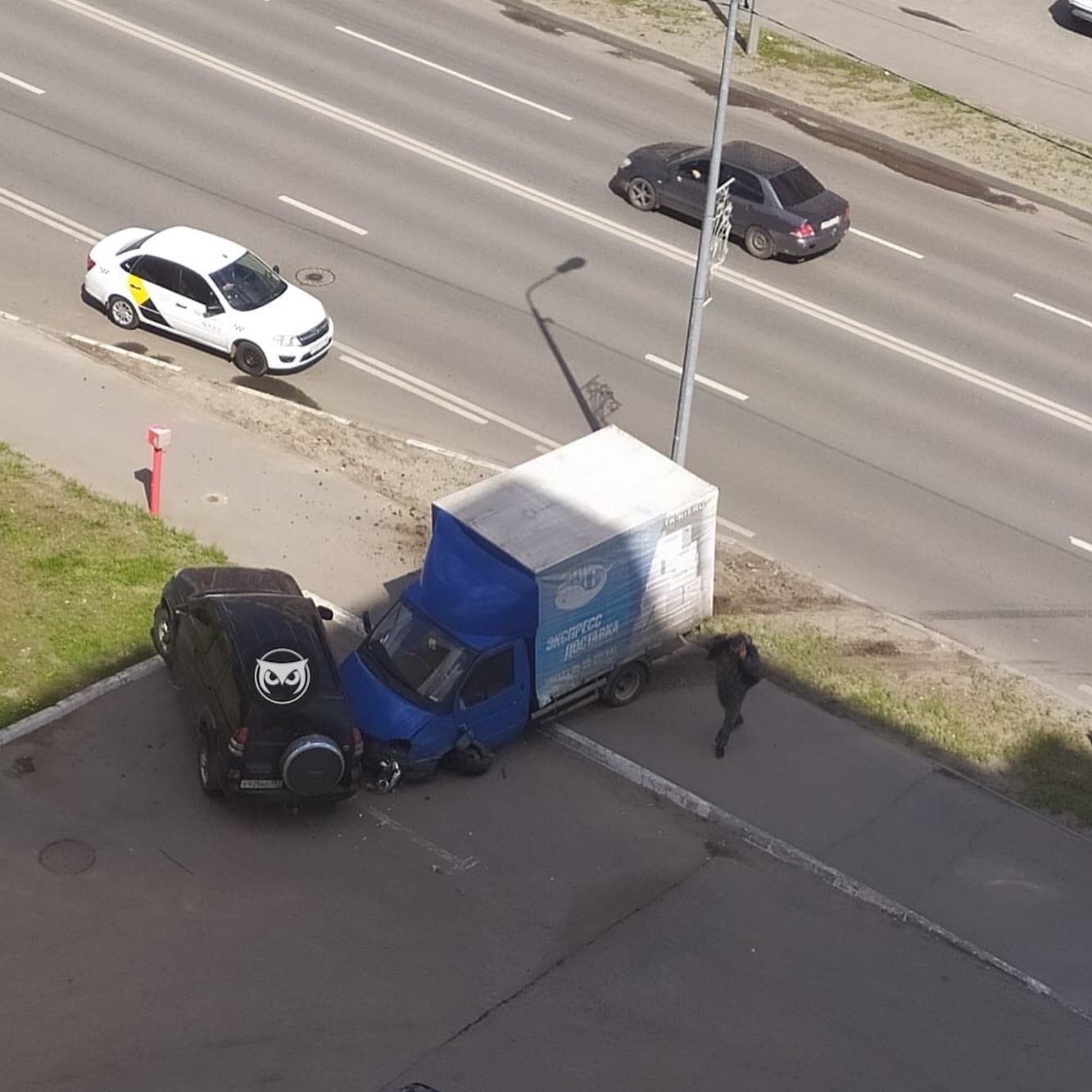 Судя по снимкам, грузовая газель вылетела с дороги и протаранила стоящий на парковке внедорожник. Удар был настолько сильным, что передние колеса большегруза буквально смяло вовнутрь. Также газель потеряла фары и боковое зеркало, капот оказался смят. На фотографиях видно, что на месте происшествия работают медики из скорой помощи.