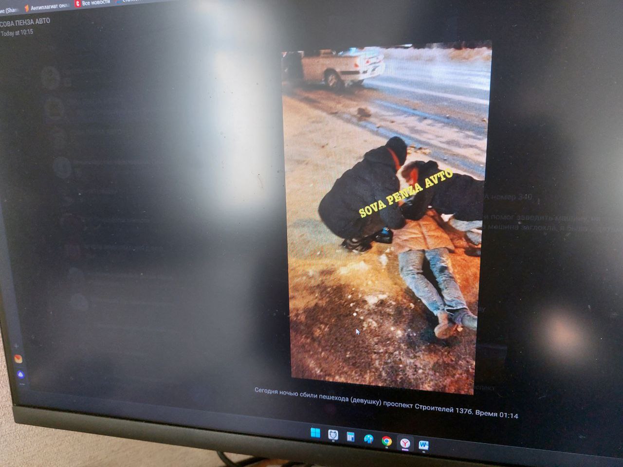 В социальной сети были опубликованы фото с места аварии. На них можно увидеть отечественный автомобиль, судя по всему, марки «Волга». У машины оказался разбит перед. Также на снимках запечатлена девушка в светлом пуховике, она лежала на проезжей части. На фотографии можно заметить, что от удара у нее с ноги слетел ботинок.
