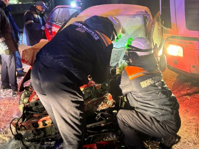 На кадрах, опубликованных ведомством, видно, как спасатели работают возле искореженного автомобиля. Из салона легковушки ими был извлечен травмированный ребенок. Пострадавшего немедленно передали прибывшей на место бригаде скорой помощи.