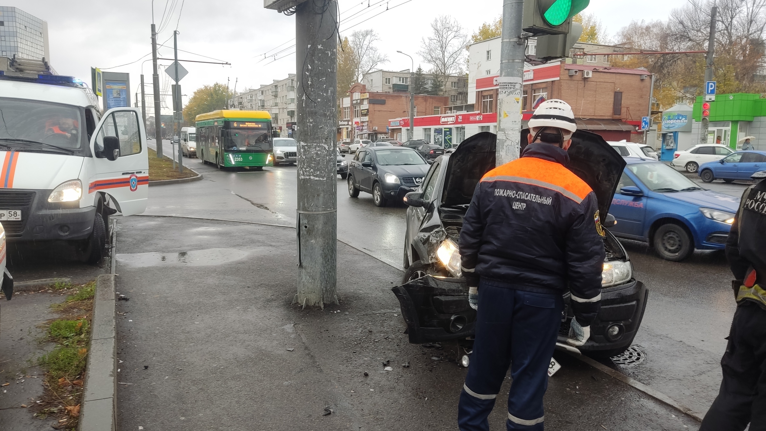 На улице Суворова в Пензе 22 октября 2025 года произошло дорожно-транспортное происшествие – легковой автомобиль Renault врезался в световую опору. Как сообщили в Пензенском пожарно-спасательном центре, сигнал о ДТП поступил в ведомство через систему 112. На место происшествия незамедлительно прибыли спасатели и бригада скорой помощи.