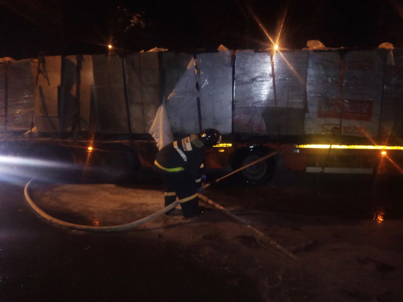 Как оказалось, во время движения у автомобиля МАЗ загорелось колесо.