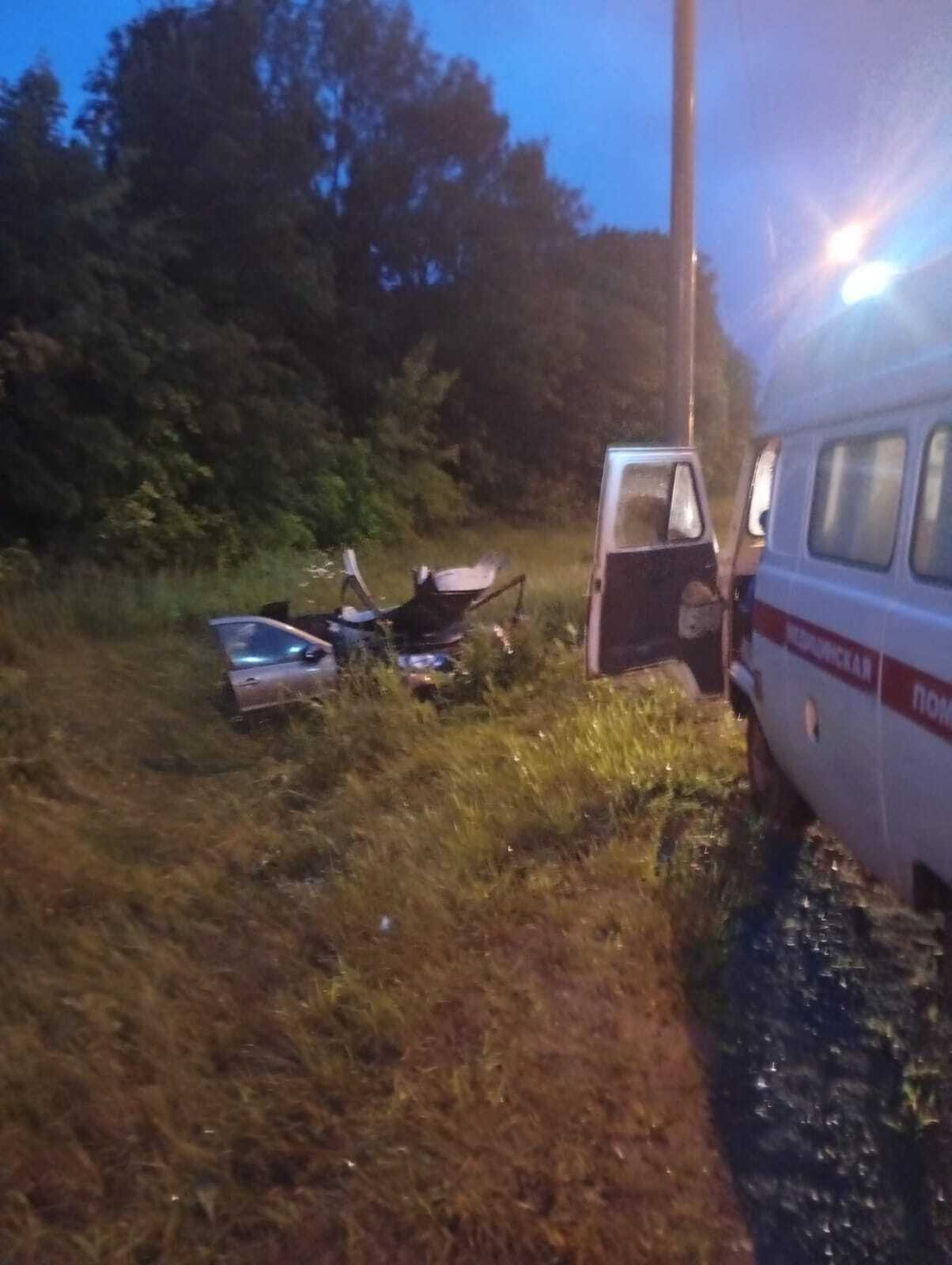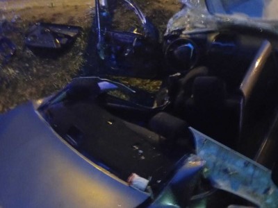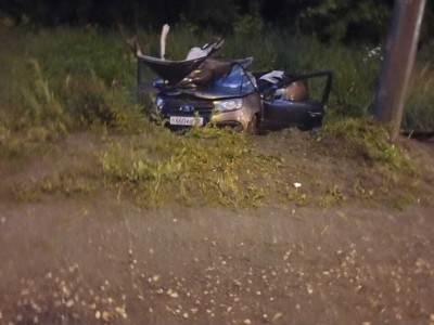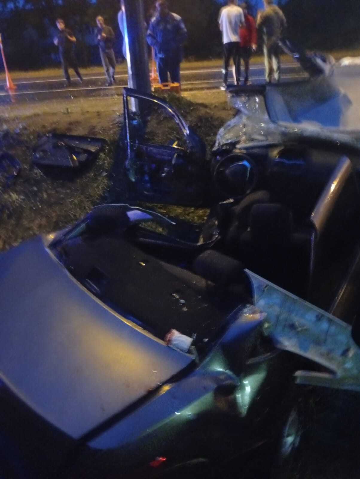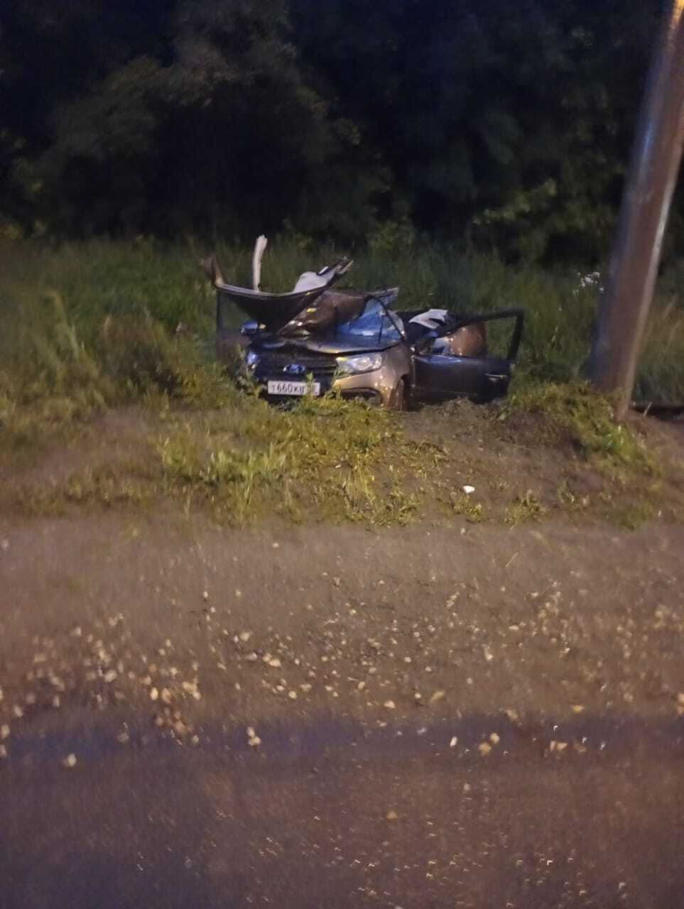 В 01:58 в ПСЧ №52 поступило сообщение о ДТП. Прибывшие на место спасатели обнаружили ужасающую картину: «Гранта», после столкновения со столбом освещения, вылетела с проезжей части и получила катастрофические повреждения. Удар пришелся в боковую часть автомобиля, буквально разорвав его.