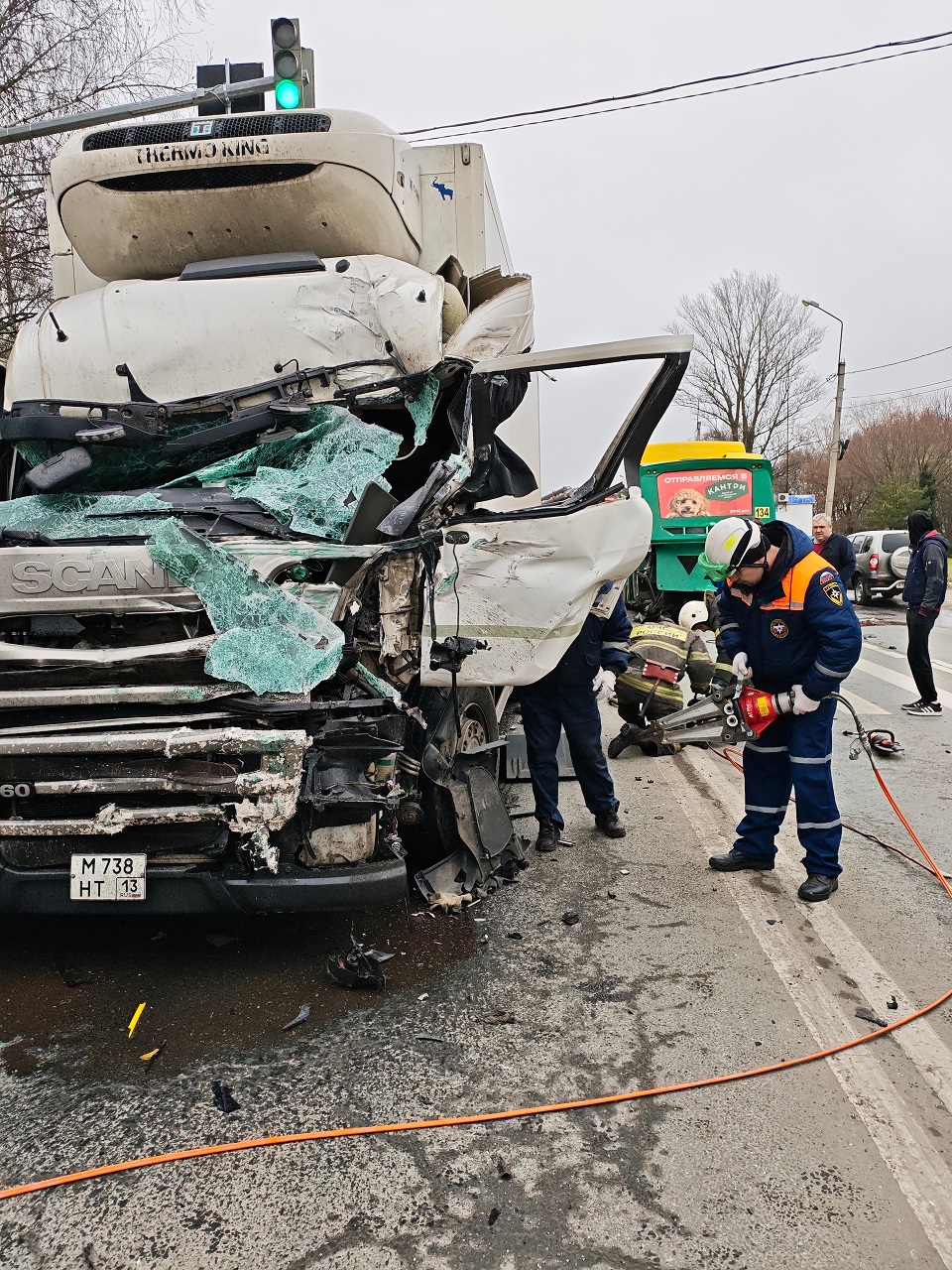 Особое внимание потребовалось для оказания помощи водителю грузовика, которого зажало в кабине после удара. С помощью гидравлического аварийно-спасательного оборудования и при участии пожарных пострадавшего удалось деблокировать и передать в руки медиков.
