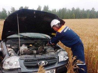 По предварительным данным, водитель внедорожника не справился с управлением, машина вылетела с дороги в кювет и перевернулась. На опубликованных фото видно, как автомобиль оказался в поле, а рядом работают спасатели.