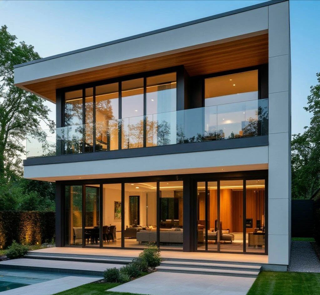 Панорамное остекление продолжает оставаться на пике популярности. Оно стирает границы между внутренним пространством и внешним миром, наполняя помещения светом и воздухом. Безрамное остекление стало одним из ключевых трендов последнего времени. Этот подход позволяет добиться максимальной прозрачности, создавая иллюзию отсутствия барьеров и интегрируя интерьер в окружающий ландшафт. Это настоящее воплощение идеи «дома как продолжения природы».