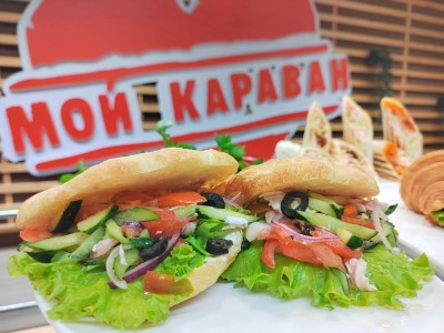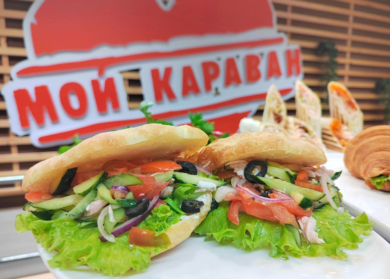 "Караван" предлагает целую гамму изысканных блюд быстрого приготовления. Аппетитные панини "Капрезе", соблазнительные тортильи, сытные сендвичи с ветчиной, авторские закрытые бургеры "Барбекю" и, конечно же, фирменный французский хот-дог – каждый найдет лакомство по душе.