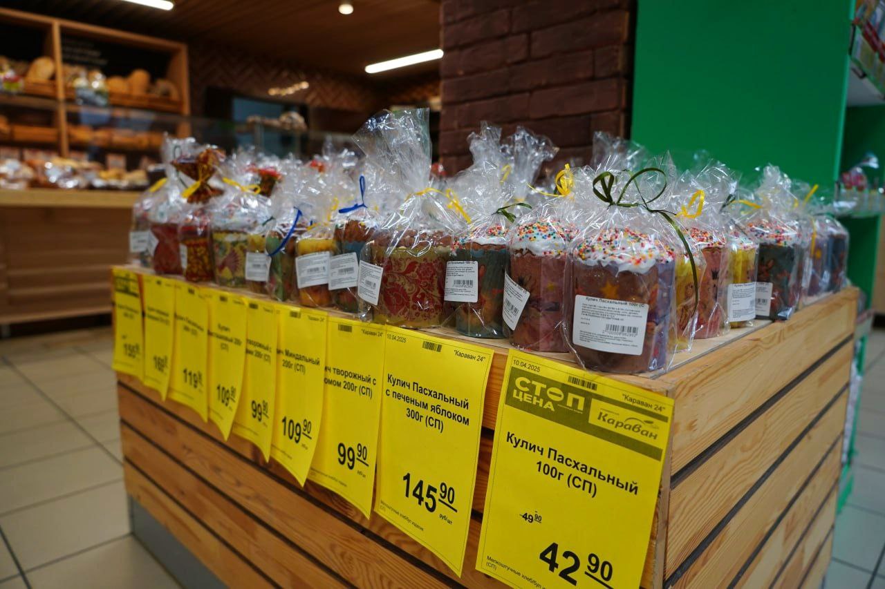 Просторный зал магазина «Караван» наполнился аппетитными ароматами приближающегося праздника Пасхи. Мастера ремесленной пекарни «Пан-Калач», умеющие превращать кулинарию в искусство, представили коллекцию авторских куличей.