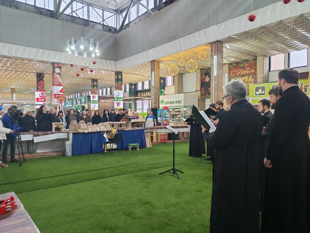 Несмотря на привычную суету торговой площадки, атмосфера в павильоне Центрального рынка в этот день преобразилась. Посетители и работники рынка стали слушателями праздничного выступления священнослужителей.