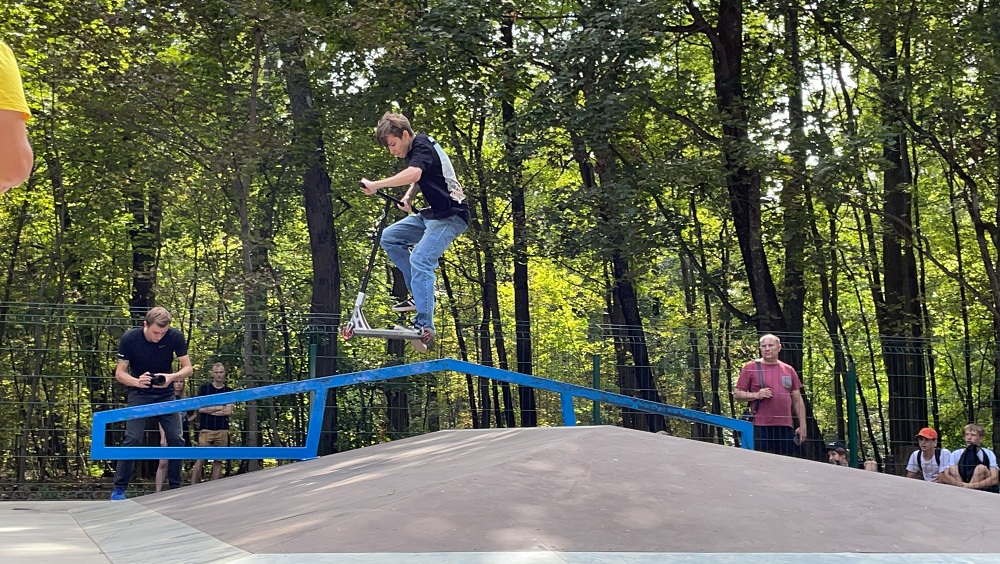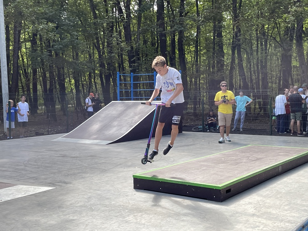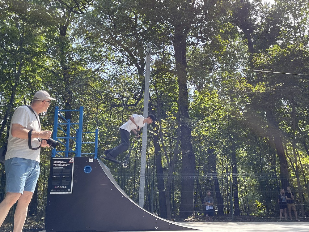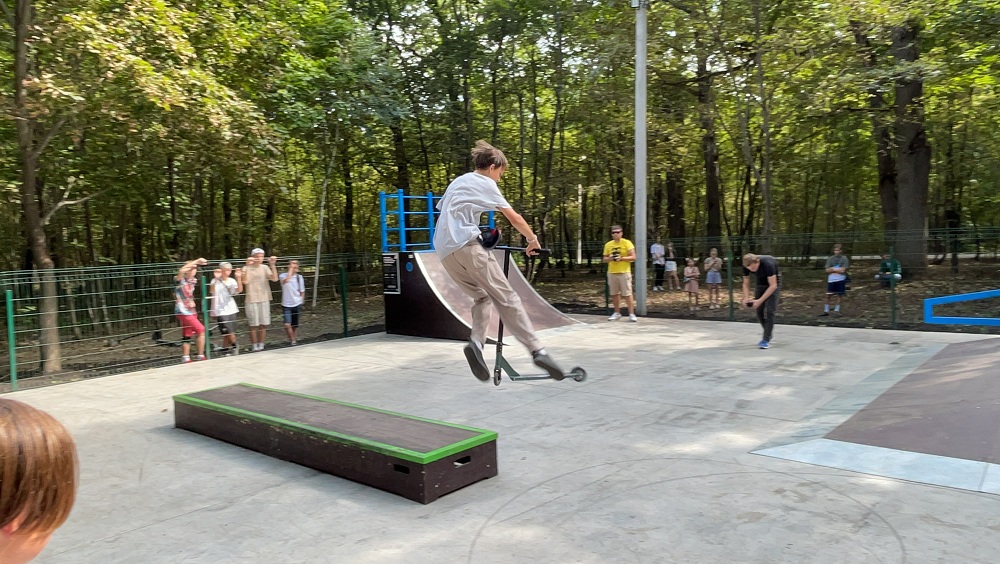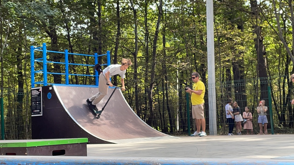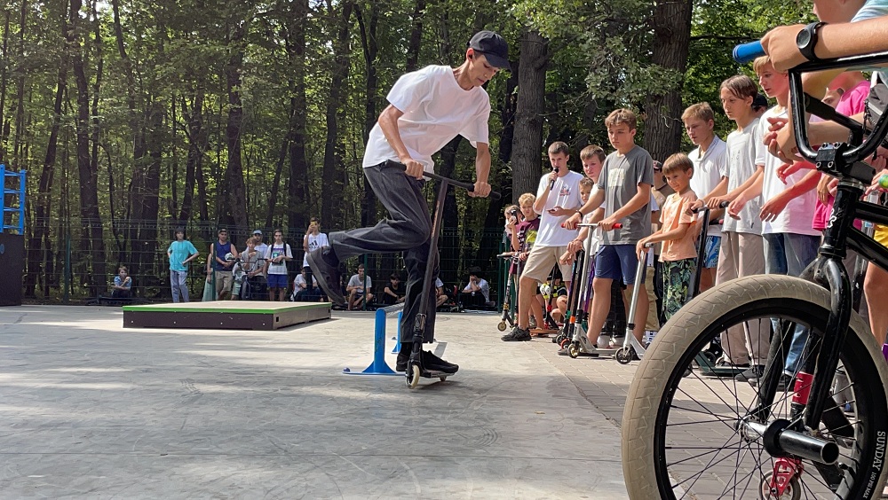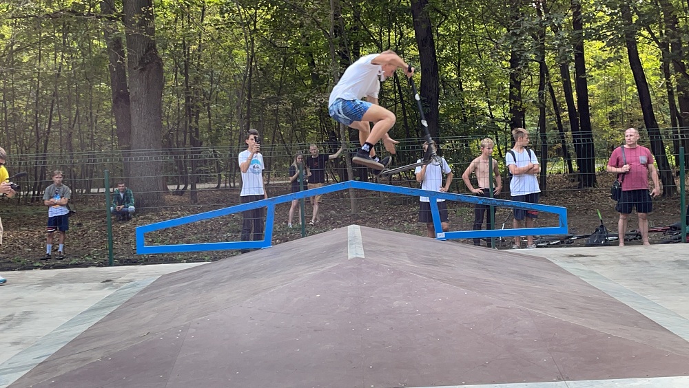 Праздничное открытие скейт-парка состоялось в выходные на Олимпийской аллее. В событии приняли участие начинающие спортсмены на самокатах, велосипедах БМХ и скейтеры. Для них организовали уличный contest-фестиваль в трех дисциплинах. Победителей определило профессиональное жюри. Оценивалась сложность и чистота исполнения базовых элементов.
