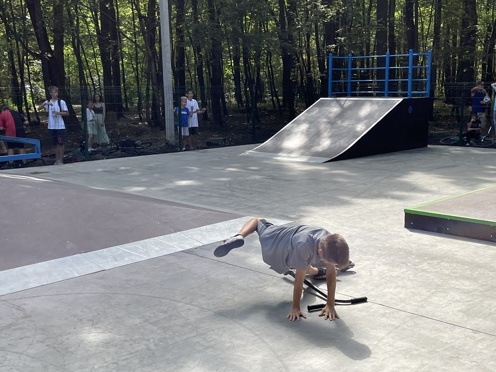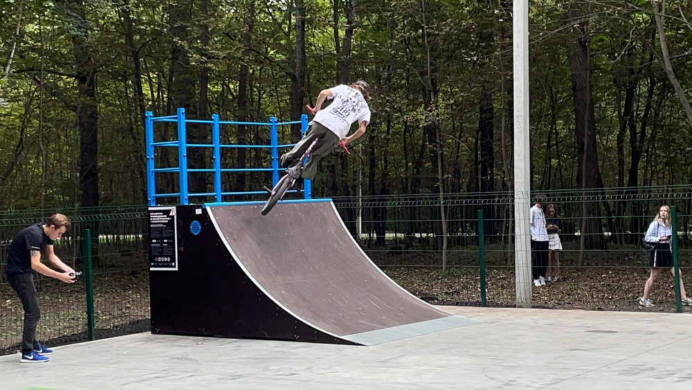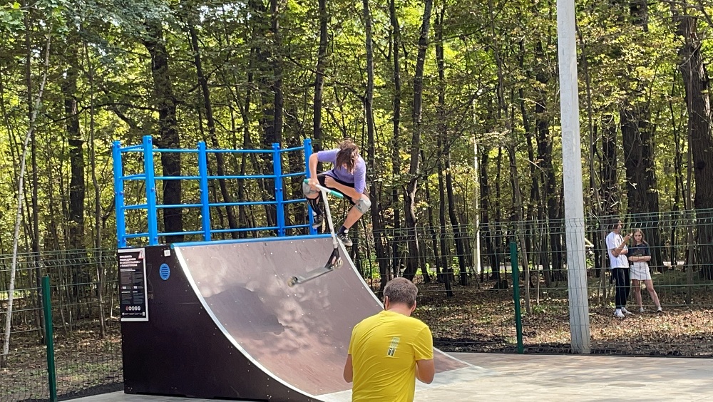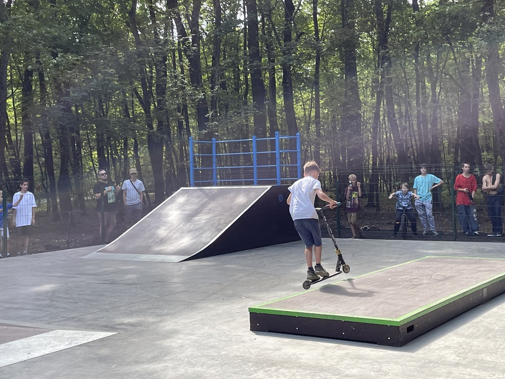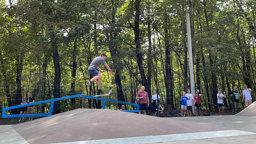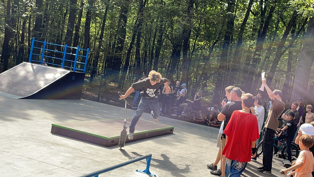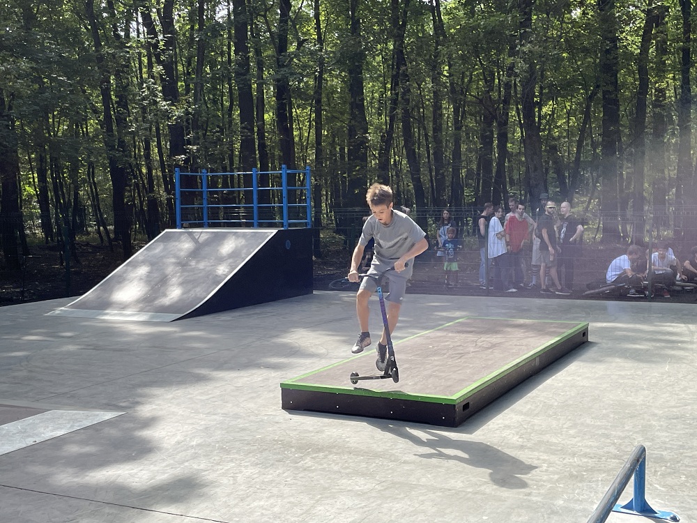 Праздничное открытие скейт-парка состоялось в выходные на Олимпийской аллее. В событии приняли участие начинающие спортсмены на самокатах, велосипедах БМХ и скейтеры. Для них организовали уличный contest-фестиваль в трех дисциплинах. Победителей определило профессиональное жюри. Оценивалась сложность и чистота исполнения базовых элементов.