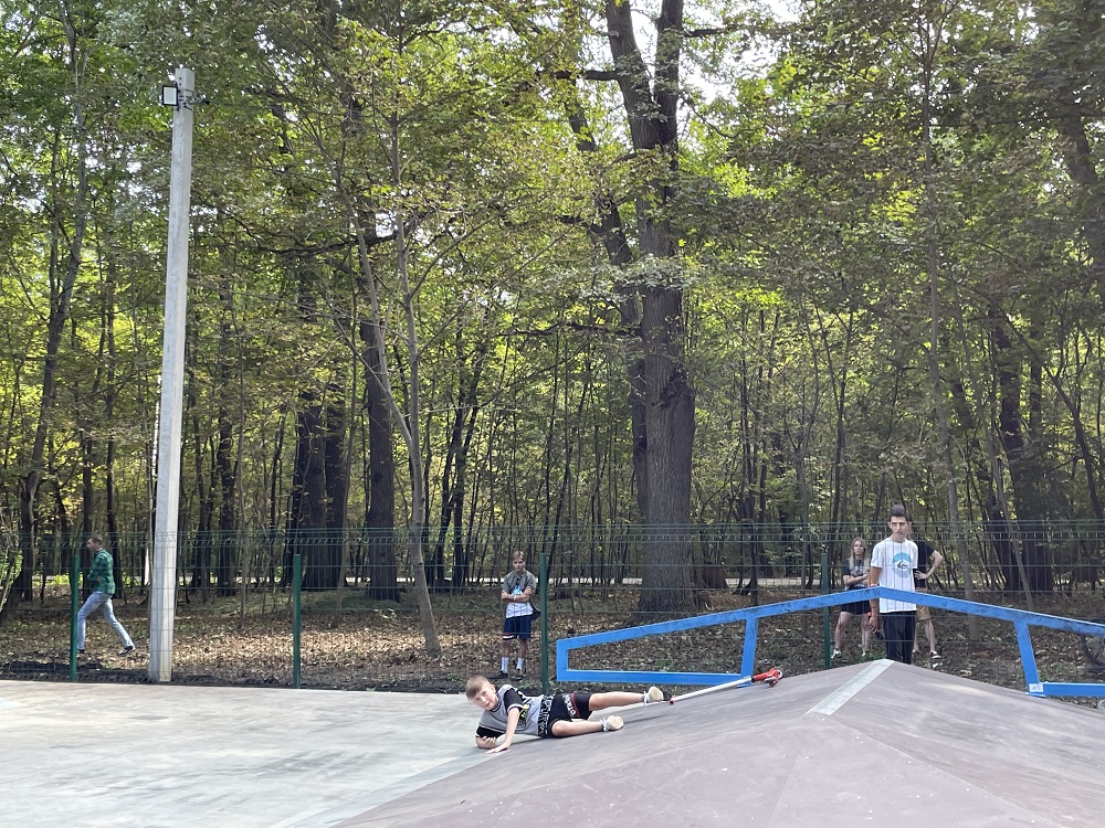 Скейт-парк появился на месте старой уличной площадки с тренажерами, которые отслужили свой срок. При строительстве ни одно дерево не пострадало.