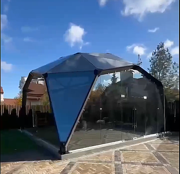 Еще одним оригинальным проектом стала стеклянная беседка, воплощающая мечту заказчика о неординарном и стильном пространстве для отдыха.