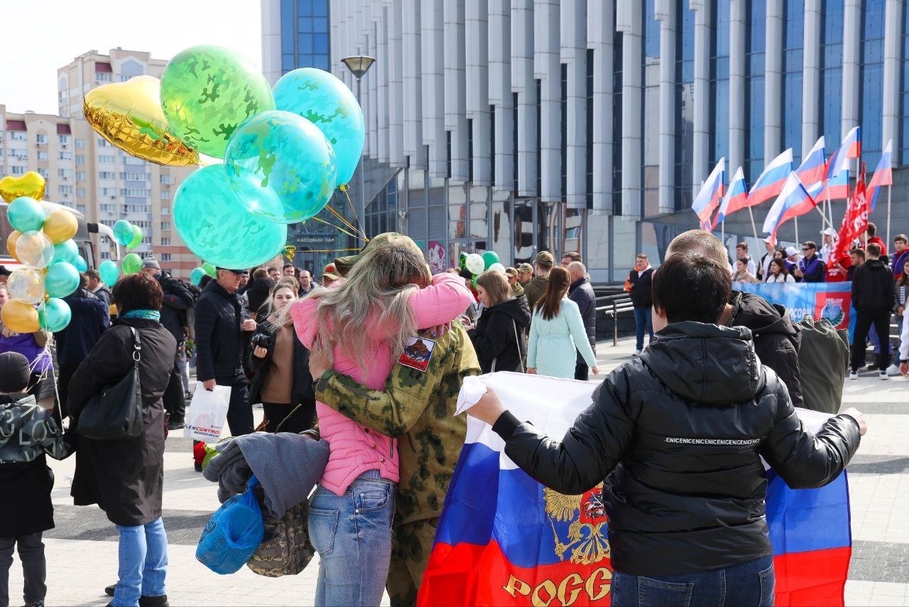 На Юбилейной площади в областном центре их встретили родные и близкие, волонтеры, представители «Молодой гвардии», которые все это время отправляли для бойцов в зону специальной военной операции гуманитарный груз.