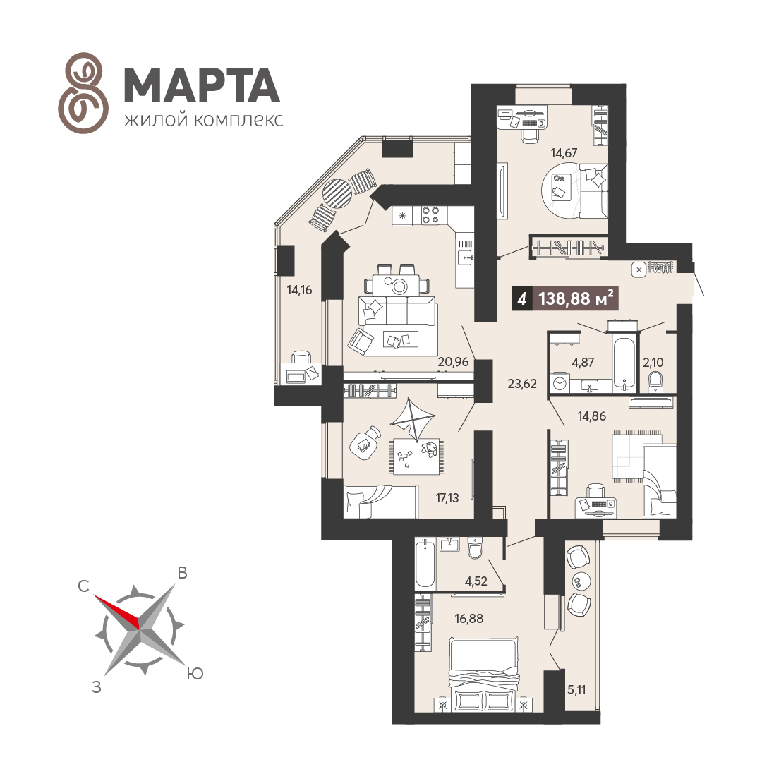 Какая она – удобная квартира для большой семьи. Разбираем главные признаки комфорта на примере 4-комнатной в ЖК «8 Марта».