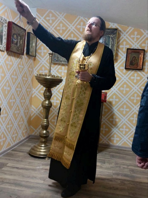 Алексей Иванов и иеромонах Августин помогли организовать молельную комнату в Донецке