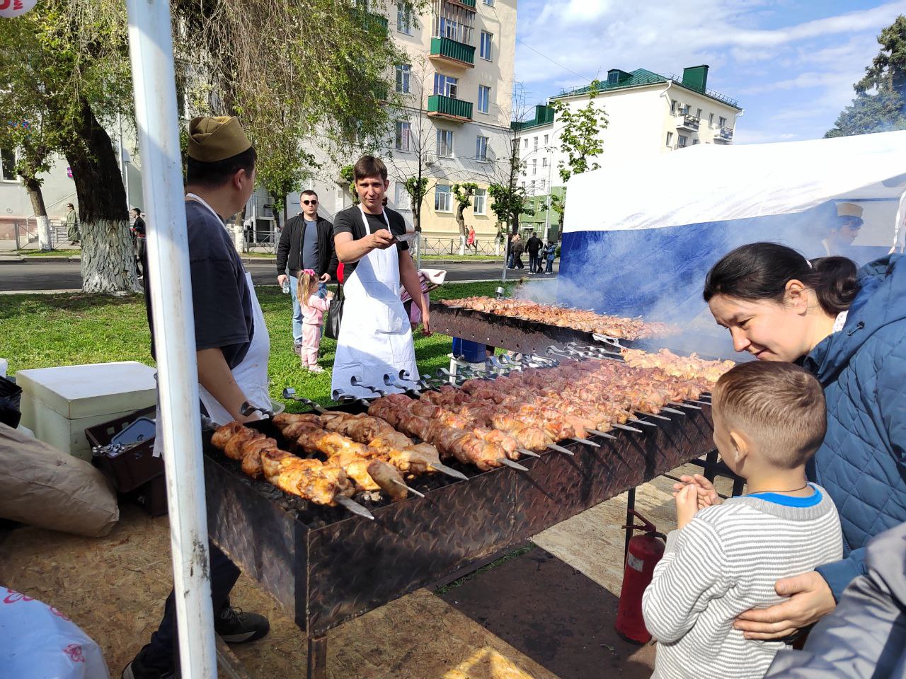 Затем зрители увидели знаменитую "Бочку" и петлю Нестерова в исполнении мини-самолетов. Спустя полчаса по завершении авиашоу толпа с набережной переместилась в центральную часть города, где Славы и в сквере "Копилка пословиц" был развернут фудкорт с шашлыками.