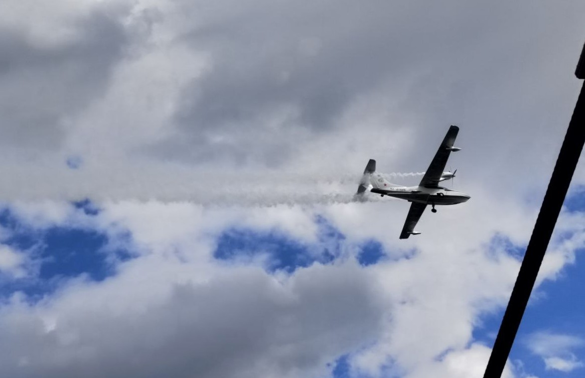 В итоге авиашоу началось с опозданием в 20 минут. Программу начал один самолет легкомоторной авиации, он помахал крыльями, пролетая у подвесного моста.
