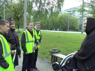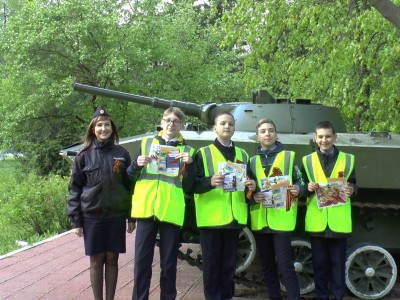 Вместе с педагогами детского юношеского центра Спутник и отрядом Юных инспекторов из Лицея № 52 они  поздравили жителей с наступающим праздником 9 Мая.
