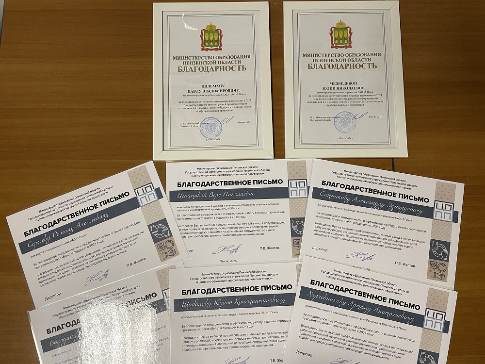 Министерство образования Пензенской области выразило благодарность Пензенскому филиалу "Т Плюс" за активное участие в проекте.