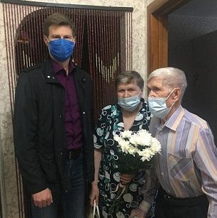 Парламентарий поздравил защитника отечества с Днем Победы, вручив цветы и продуктовый набор.