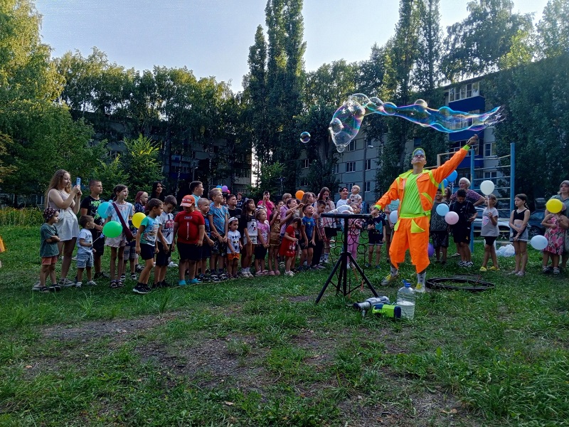 Торжество, наполненное конкурсами, танцами, мыльными пузырями, фокусами, прошел во дворе домов по ул. Экспериментальная, 16, 17, 18, 12.