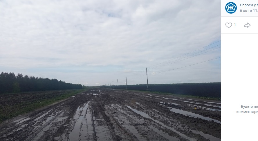 «С каждым годом дорога всё хуже и хуже. Весной мы, родители, не отпустили своих детей в школу на школьном автобусе», - пишет женщина в сообществе «Спроси у Мельниченко».