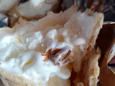 Жительница областного центра рассказала о неприятной находке в стаканчике мороженого. Женщина опубликовала в соцсети снимки, на которых видно, что в лакомстве «спрятался» мертвый таракан.