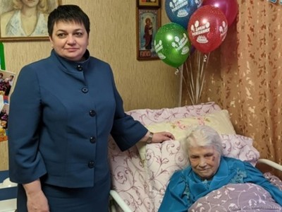 Поздравить ветерана приехала глава администрации Октябрьского района города Ольга Сорокина. Она вручила долгожительнице поздравительную телеграмму от президента Владимира Путина и подарок.
