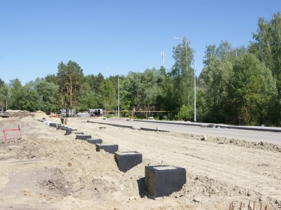 На участках дороги со стороны улиц Измайлова и Антонова уже уложен асфальт. Подрядчик укладывает тротуарную плитку, устанавливает бордюры и ведет работы по устройству фундамента и монтажу стоек для шумозащитных экранов. После завершения переустройства инженерных сетей строители приступят к устройству песчаного и щебеночного основания дороги.