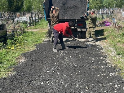 В подтверждение своих слов Управление опубликовало фотографии, на которых видно, как рабочие отсыпают дорогу, проходящую между могилами. Судя по снимкам, на данный момент дорога выровнена.
